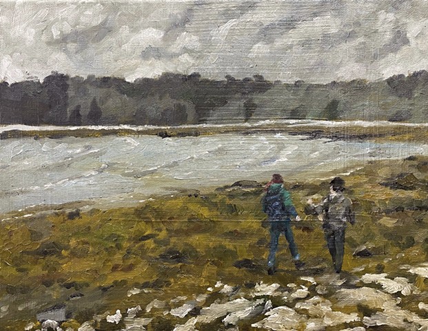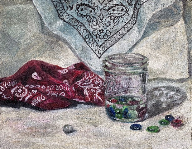 oil on wood panel and sand