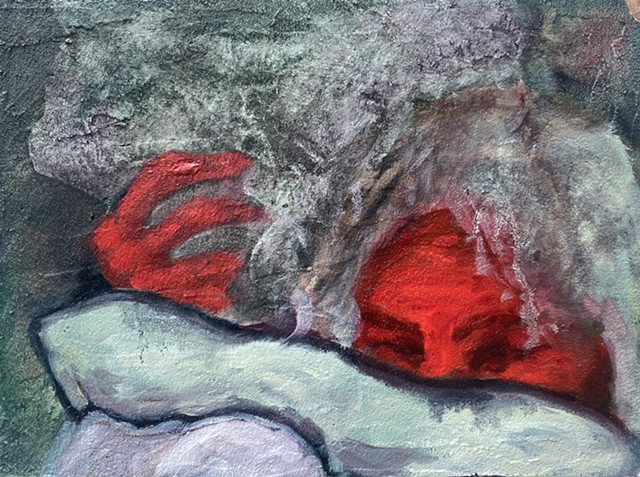 oil, paper towel, sand on canvas
